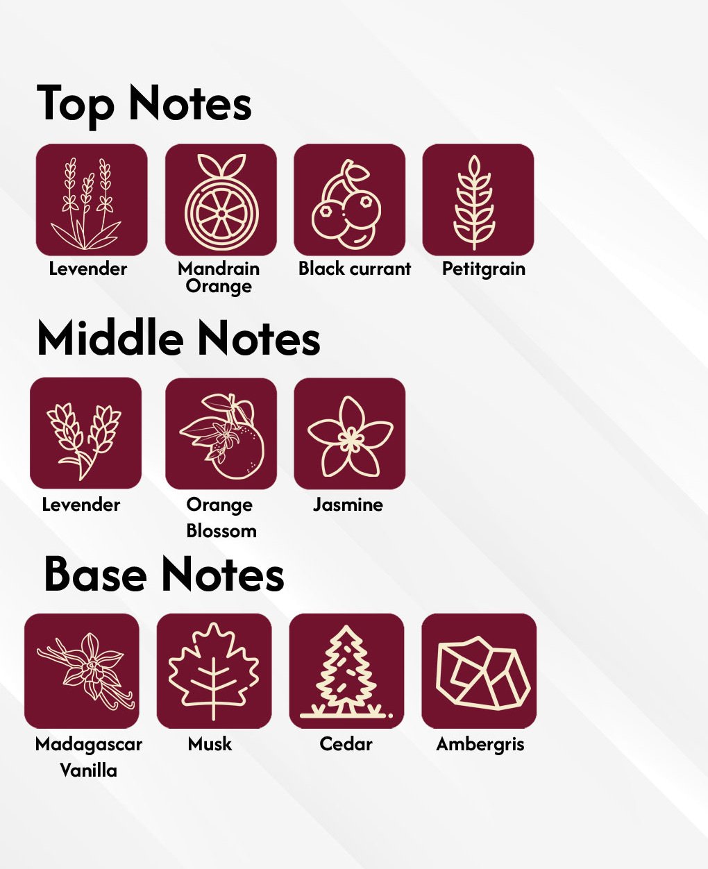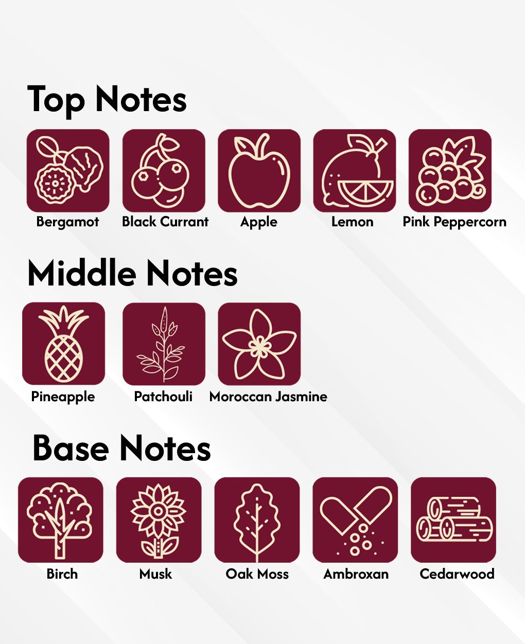 • Base Notes: Leather, Woody Notes, Tobacco – rich, warm, and long-lasting finish